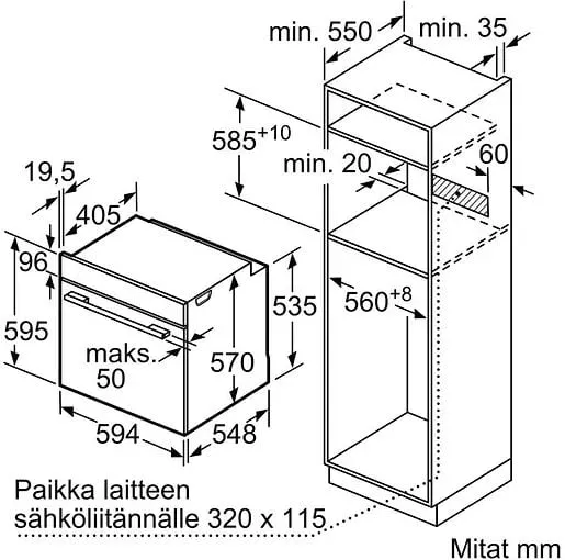 Требуемое пространство для установки В x Ш x Г (мм): 585-595 x 560-568 x 550