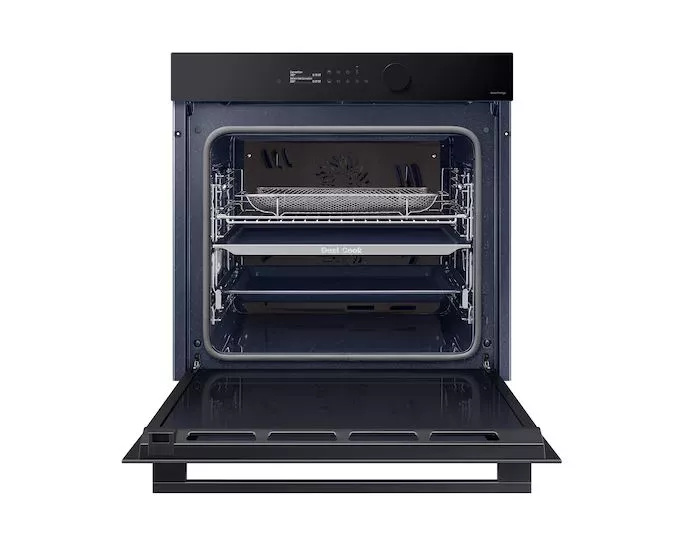 Большая вместимость 76 л открывает простор для кулинарных экспериментов: больше противней за раз, крупные куски мяса и праздничные блюда помещаются без компромиссов. Поддержка SmartThings и Wi-Fi добавляет сценарии смарт-кухни — от подсказок по рецептам до удалённого контроля.