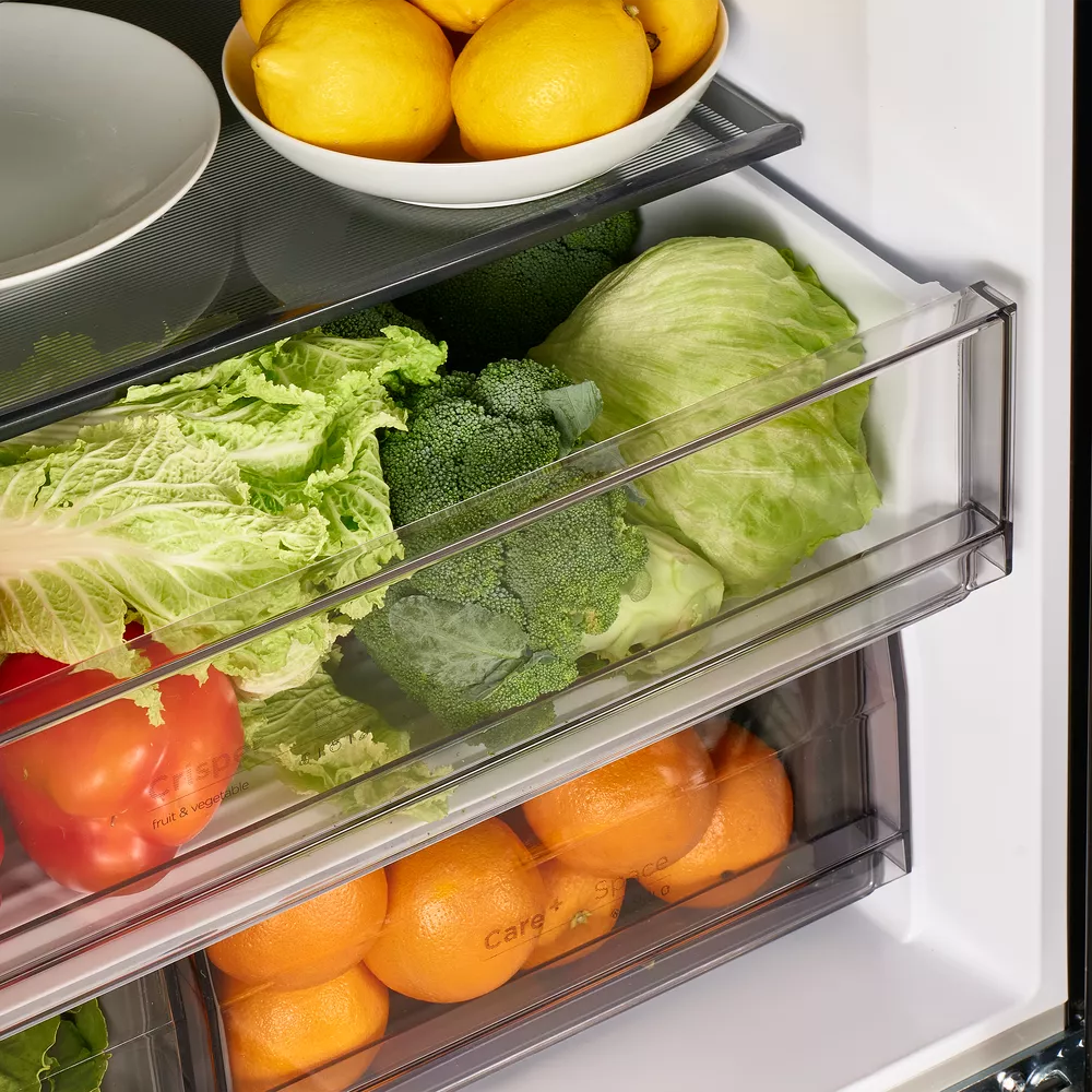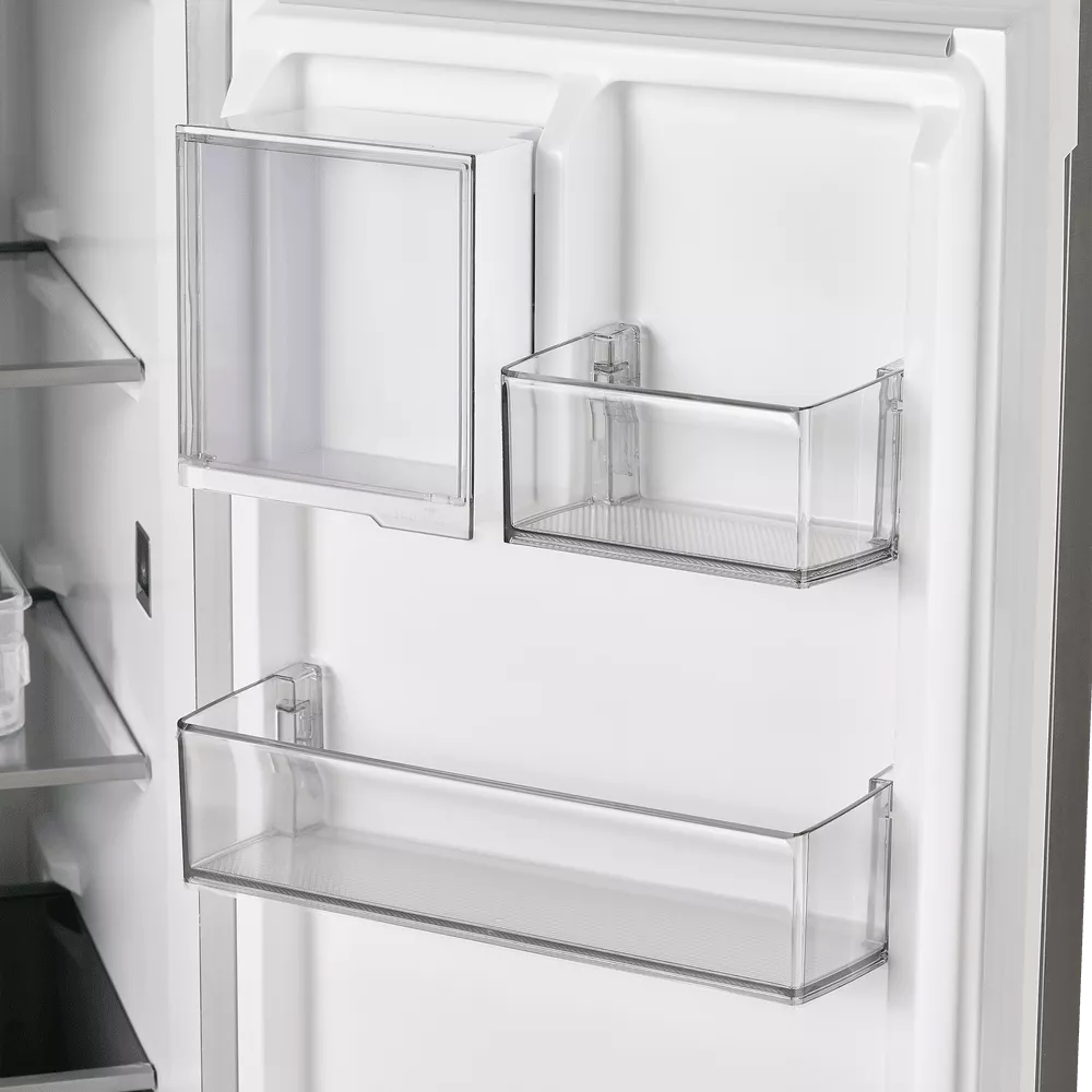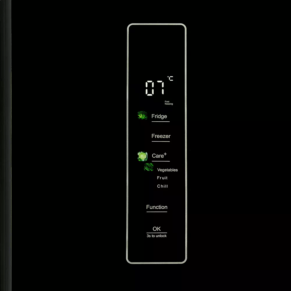 При внушительной общей вместимости модель остаётся комфортной в повседневном использовании: уровень шума 37 дБ подходит для кухни-гостиной, а сенсорная панель на фасаде даёт быстрый доступ к основным режимам — от «Быстрого охлаждения» до «Eco».
