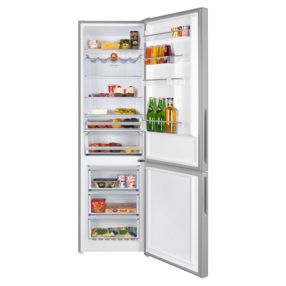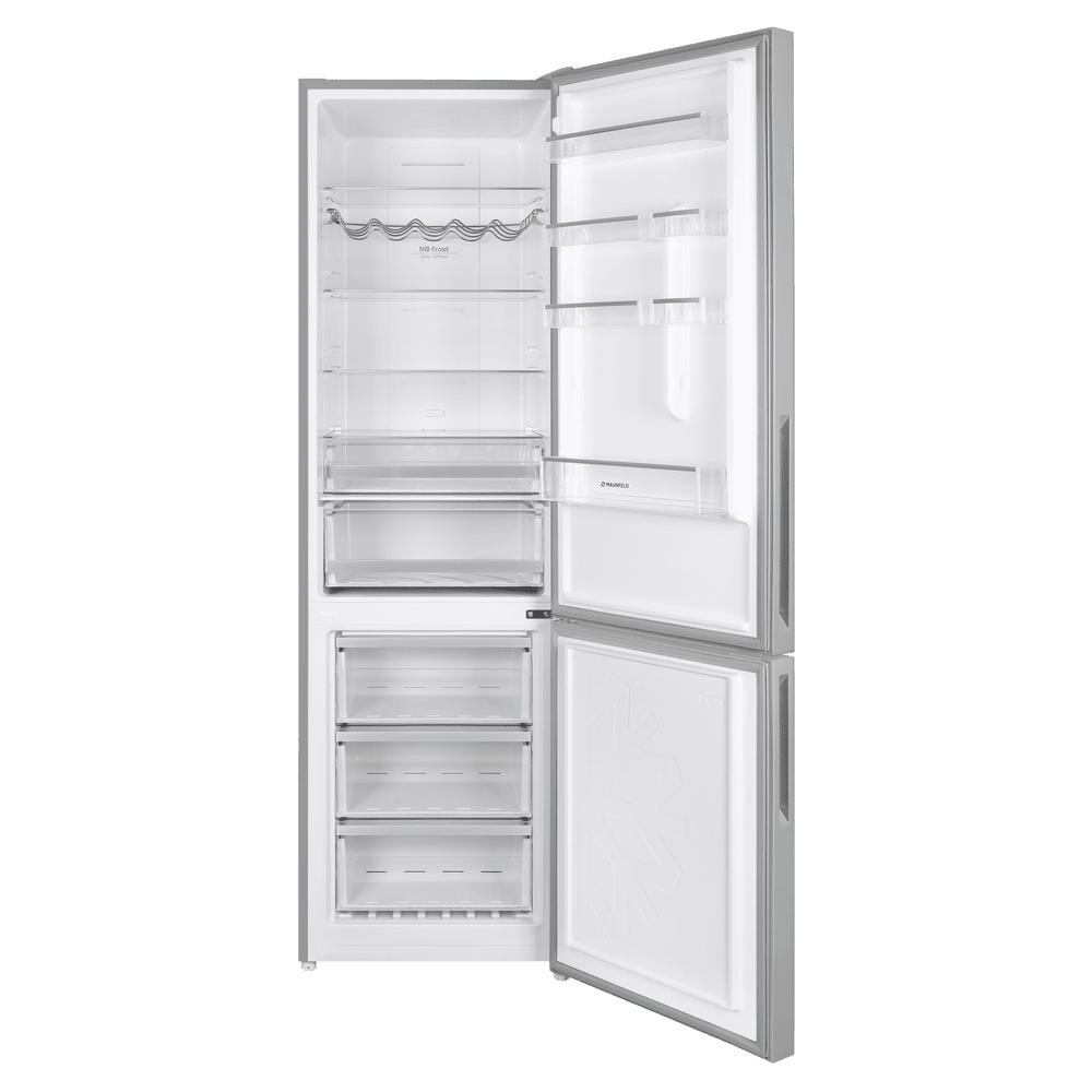 Холодильник NO FROST с инвертором MAUNFELD MFF200NFS Inverter создан для тех, кто ценит стабильную температуру и чистоту внутри камер. Модель сочетает элегантный стеклянный фасад и практичный металлический корпус, а продуманная организация полок и ящиков помогает легко навести порядок и быстро находить продукты.