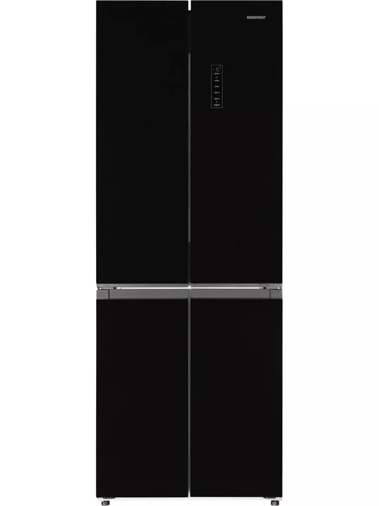 Четырехдверный холодильник NORDFROST RFQ 440 NFGB с инверторным компрессором, автоматической системой охлаждения No Frost и электронным управлением — отличное решение для большой семьи. Модель сочетает в себе утонченный дизайн и функциональность. Прибор, выполненный в стильном черном цвете, имеет высоту 192 см и ширину 703 мм. Общий объем 417 литров дает возможность хранить большое количество продуктов.