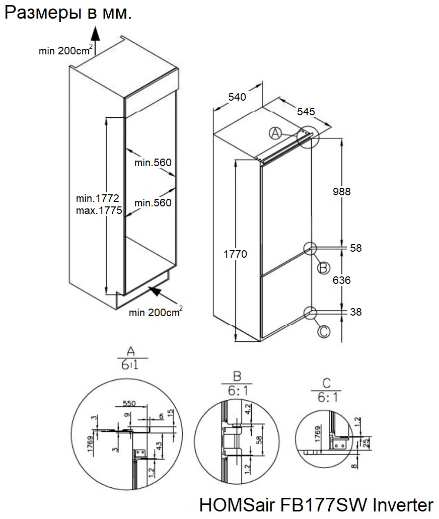 Холодильник встраиваемый HOMSair FB177SW Inverter — удачное решение для тех, кто ценит аккуратную интеграцию техники в кухонный гарнитур и продуманную организацию пространства. Модель выполнена в лаконичном стиле и поддерживает возможность перенавешивания двери, поэтому легко подстроится под планировку кухни. Двухкамерная конструкция обеспечивает комфортное хранение повседневных продуктов и заморозку запасов на перспективу.