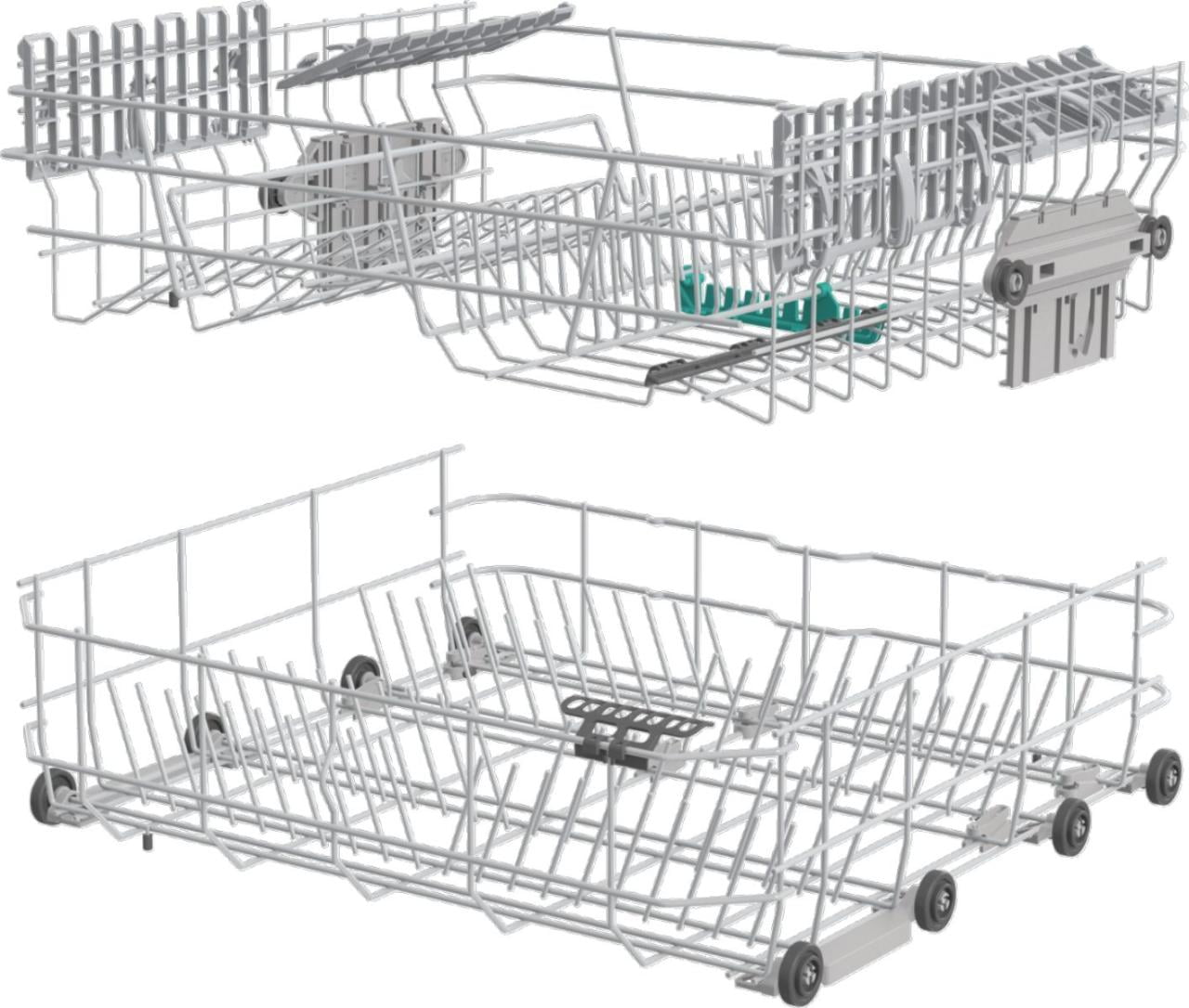 Нижняя корзина: Крупная сетка корзины, Складные/раздельные задние держатели тарелок, Корзина для столовых приборов