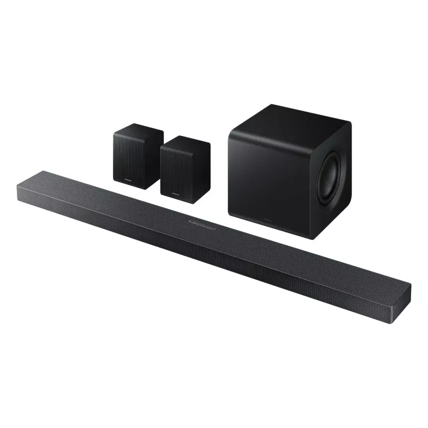 Q-Symphony объединяет динамики саундбара и совместимого телевизора Samsung в единую систему. SpaceFit Sound Pro анализирует акустику помещения и автоматически настраивает звук для оптимального качества. Adaptive Sound адаптирует звуковой профиль в реальном времени в зависимости от контента.