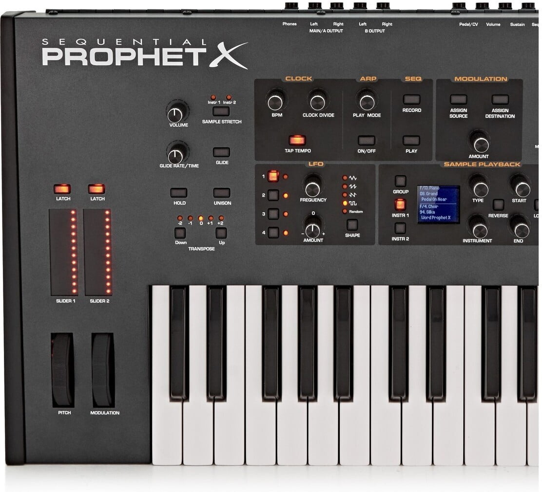 Очень универсальный и индивидуальный 8/16-голосный Prophet X включает в себя новый звуковой движок, который обеспечивает мощь двух инструментов на основе сэмплов 16 бит / 48 кГц и двух цифровых осцилляторов высокого разрешения market - все это обработано аналоговыми фильтрами. Благодаря 150-гигабитному звуковому дизайну 8Dion, состоящему из сэмплов и последовательности из ожидаемых эффективных инструментов синтеза. Этот гибрид sin cash представляет собой высококачественную полувзвешенную клавиатуру 5-oktaavinen (с функцией velocity и channel aftertouch), встроенный блок питания, MIDI USB в режиме ожидания и три ярких OLED-экрана. Это надежный и многогранный выбор как для студии, так и для гастрольного концерта.