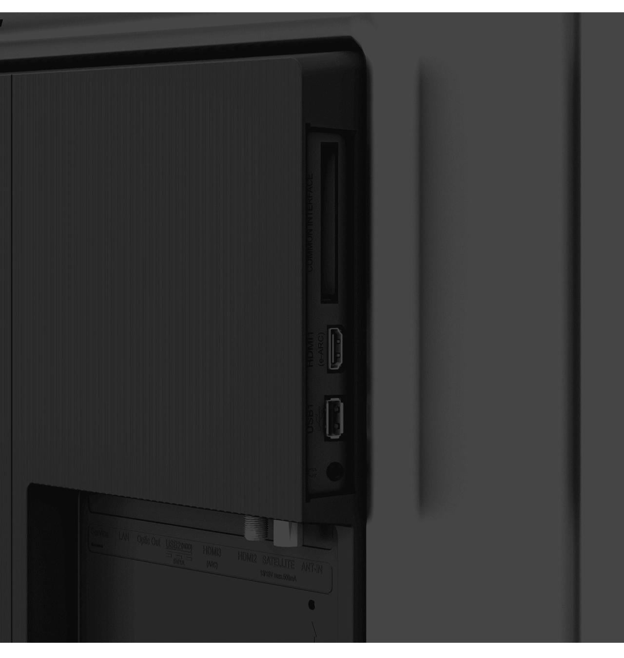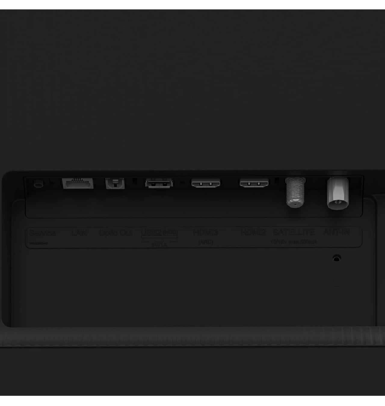Коммутационные возможности телевизора представлены разъемами HDMI 2.1 (три), USB 2.0 Type-A (два), RJ45, DVB Cam, 3,5 jack. Встроенные приемники Wi-Fi и Bluetooth 5.0 поддерживают беспроводную связь с источниками информации. Технология Chromecast обеспечивает трансляцию контента с мобильных устройств. Безопасной эксплуатации техники способствует защита от детей.