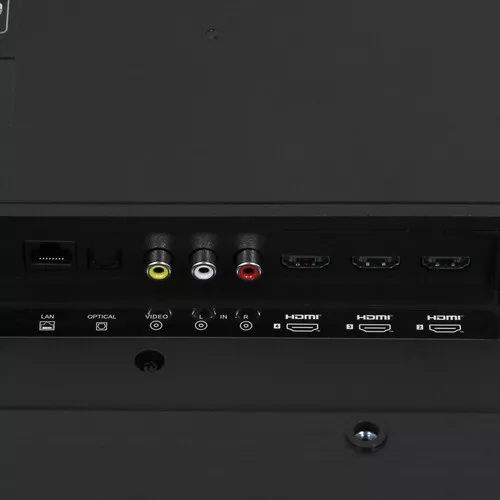 Аудиосистема мощностью 30 Вт с поддержкой Dolby Atmos не требует подключения сторонней акустики. Безрамочный дизайн, подставка по бокам, VESA 300×300 мм.