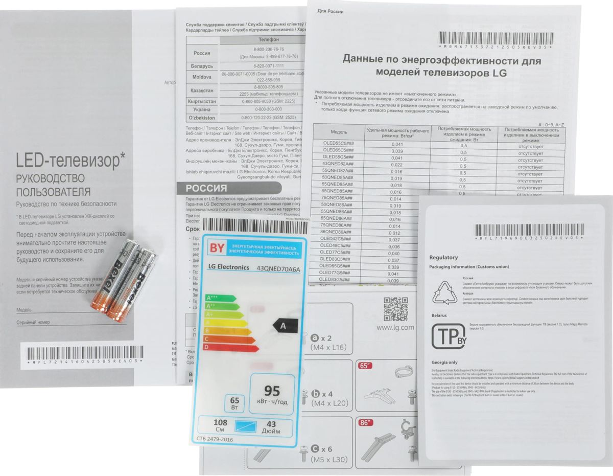 QNED — квантовые точки + NanoCell: Технология QNED объединяет два передовых решения LG: Quantum Dot (квантовые точки) для расширенного цветового охвата и высокой яркости, и NanoCell (наноячейки) для поглощения нежелательных световых волн и улучшения чистоты цвета. Это обеспечивает насыщенные, реалистичные оттенки и широкие углы обзора без искажений. Важно: В модели используется Direct LED-подсветка, а не Mini-LED, что характерно для 43-дюймовой диагонали.