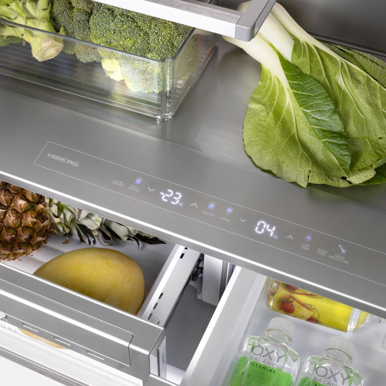 Инновационный встраиваемый холодильник HIBERG S-RFQ 800 W с инверторным компрессором, системой охлаждения Total No Frost и электронным управлением — идеальный вариант для просторной кухни, который станет стильным дополнением интерьера. Техника высотой 199,6 см, шириной 96,2 см и глубиной 57,2 см отлично подходит для встраивания, создавая цельное кухонное пространство. По своему функционалу и используемым технологиям прибор не имеет аналогов на российском рынке, а роскошный дизайн техники доставит пользователю настоящее эстетическое удовольствие.